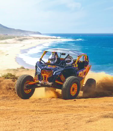 Razor (UTV) a orilla de playa y en zona desértica